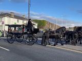 MASKED youths on motorcycles brought Finglas village to a near standstill this morning as the coffin of gangland murder victim Brandon Ledwidge was brought to St Canice’s Church for his funeral.