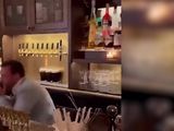 Conor McGregor shadowboxing behind the bar of an Irish pub in New York.